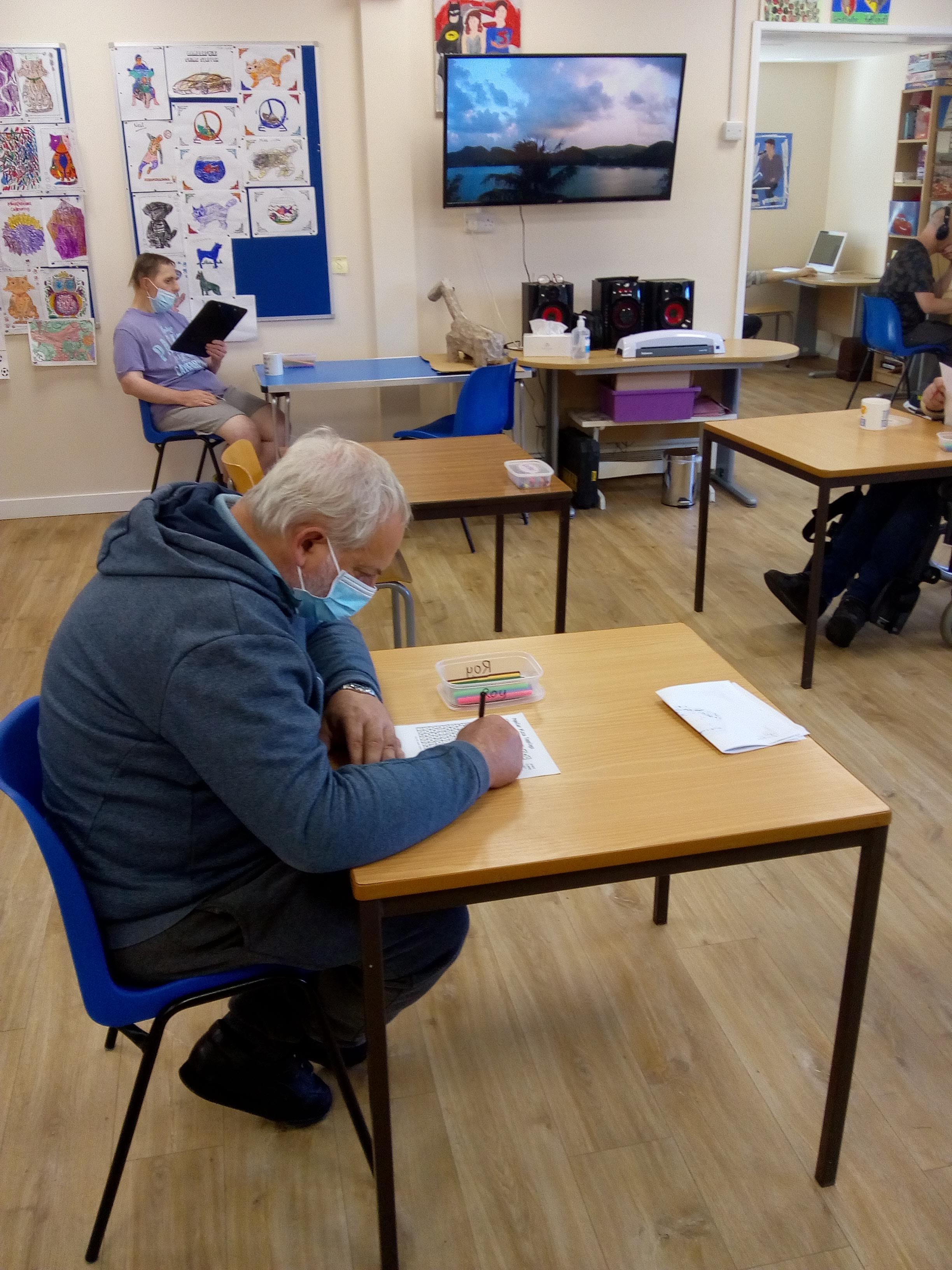 The centre has been reopen for four weeks now and members have settled into the new routine of keeping a safe distance, hand washing and wearing face coverings. Activities are continuing mostly as before, with adjustments where necessary but everyone seems happy to be back in with their friends.