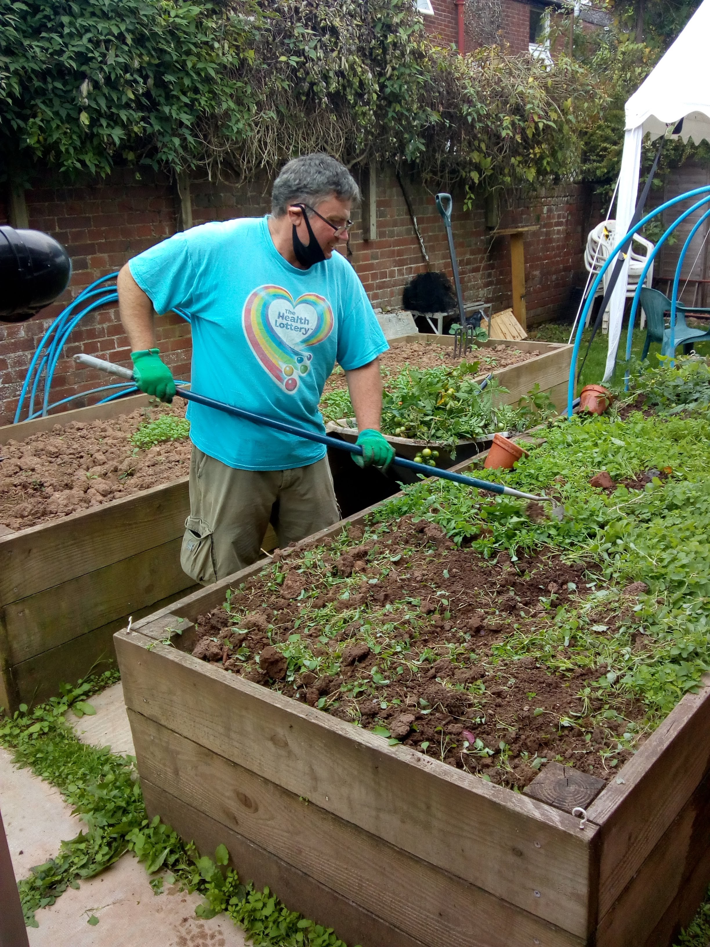 As the weather has been fine, several members have been using the outdoor space to sit, colour, chat and eat their lunch. Suzanne and Gareth have planted the first of this Winter’s vegetables (red and white onion sets), with their crop marked out for some friendly competition! They also planted up some Spring bulbs, so hopefully outside the entrance will be a wash of colour.