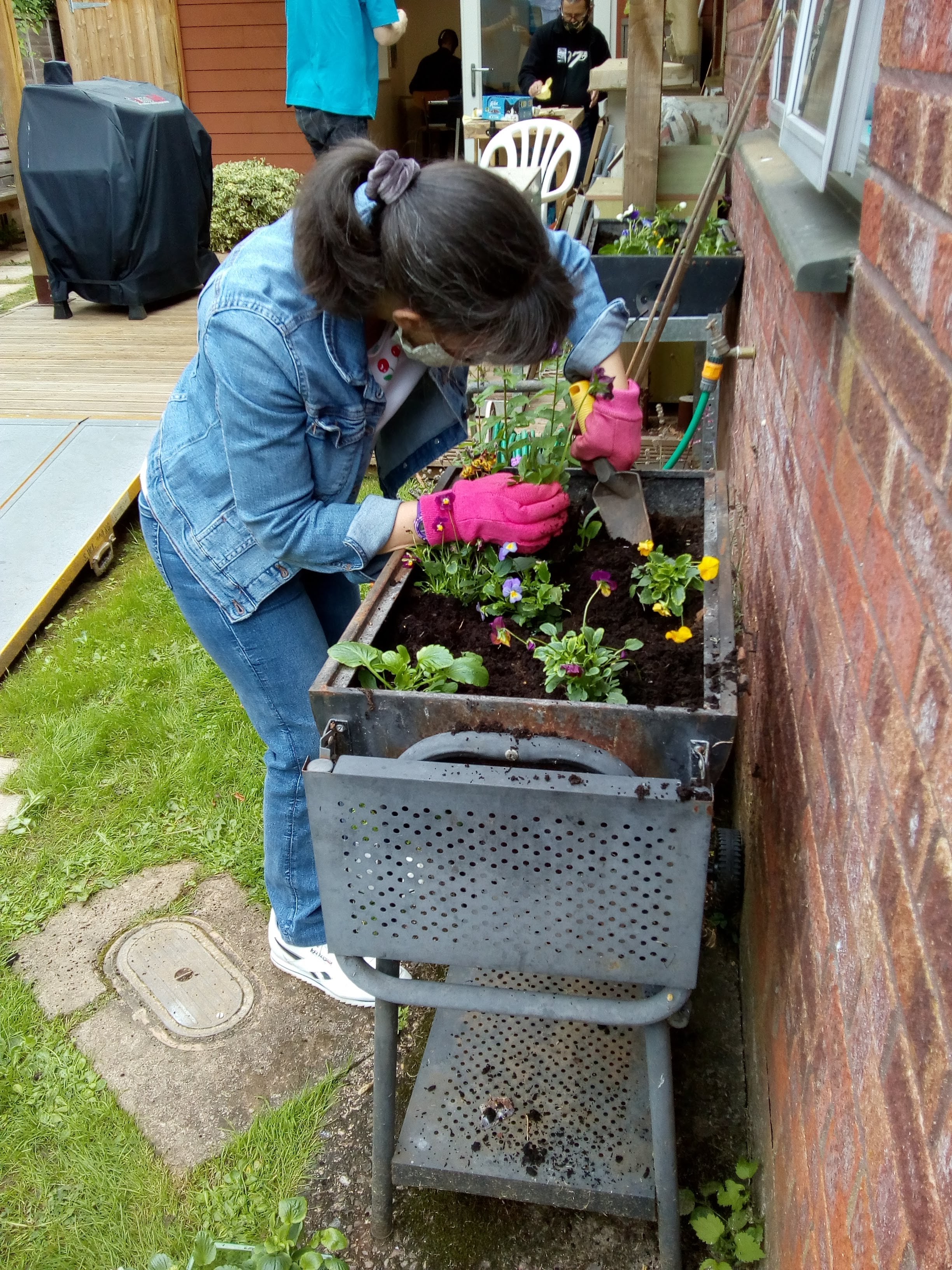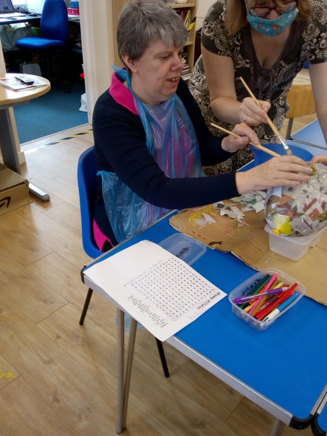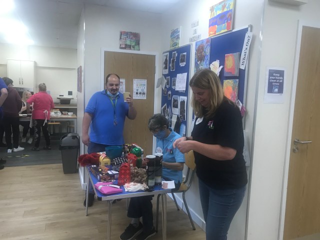 On Saturday 25th September, members (and carers and family) enjoyed a couple of hours at the centre- a chance to catch up with friends they hadn’t see for over a year! Prior to the event, Suzanne helped to plant some new bedding plants after Martin helped to clear the troughs. Inside, members had been busy making items to sell, including fridge magnets and ornaments as well as decorating bottles (with lights inside).