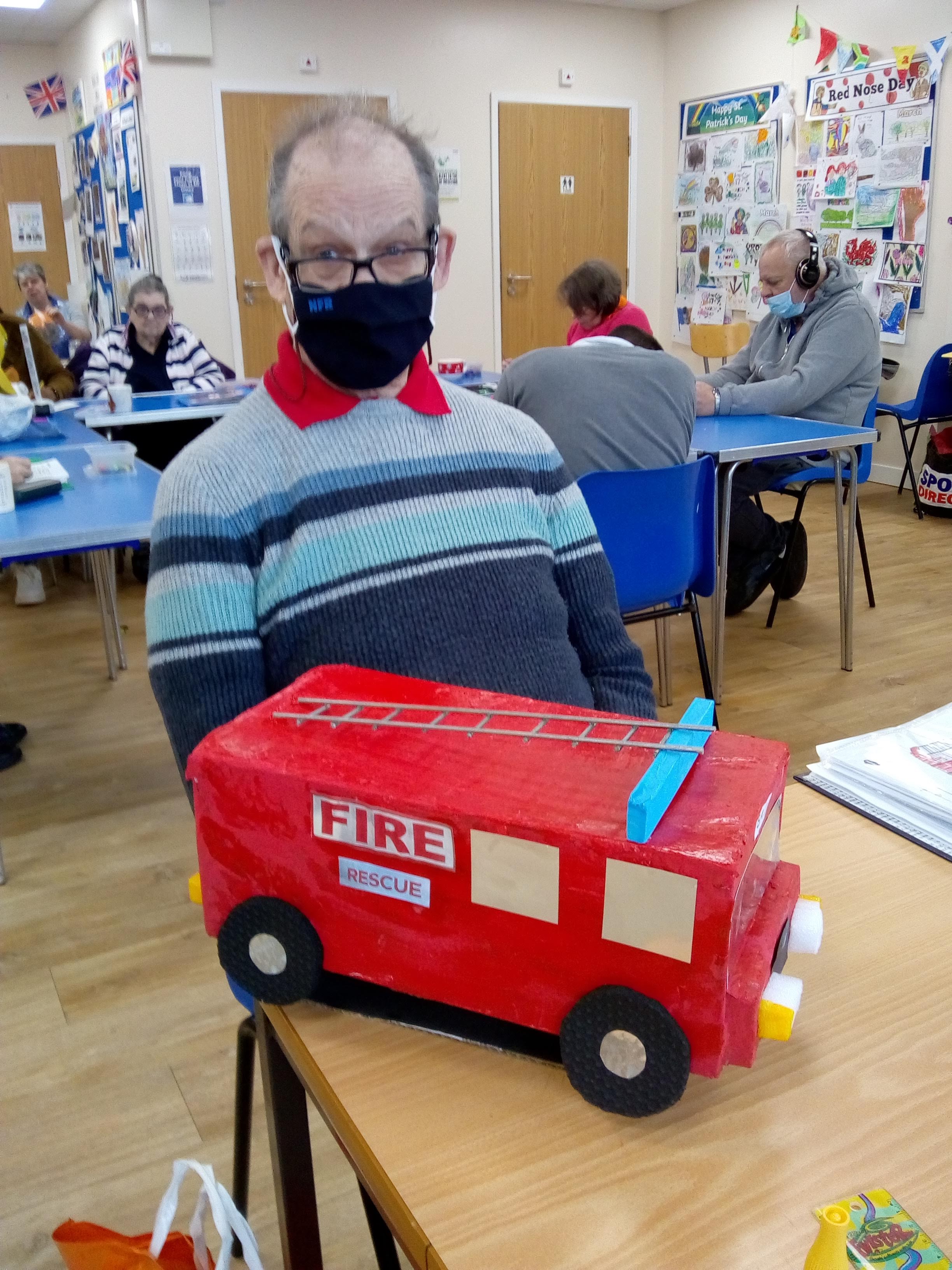 Inside the centre, we have been busy with various activities. Brian put the finishing touches on his fire engine and Rachael is making a lifeboat for her RNLI bear. There are lots of Easter and Spring art and crafts happening and everyone certainly has plenty of choice as to what they want to do.
