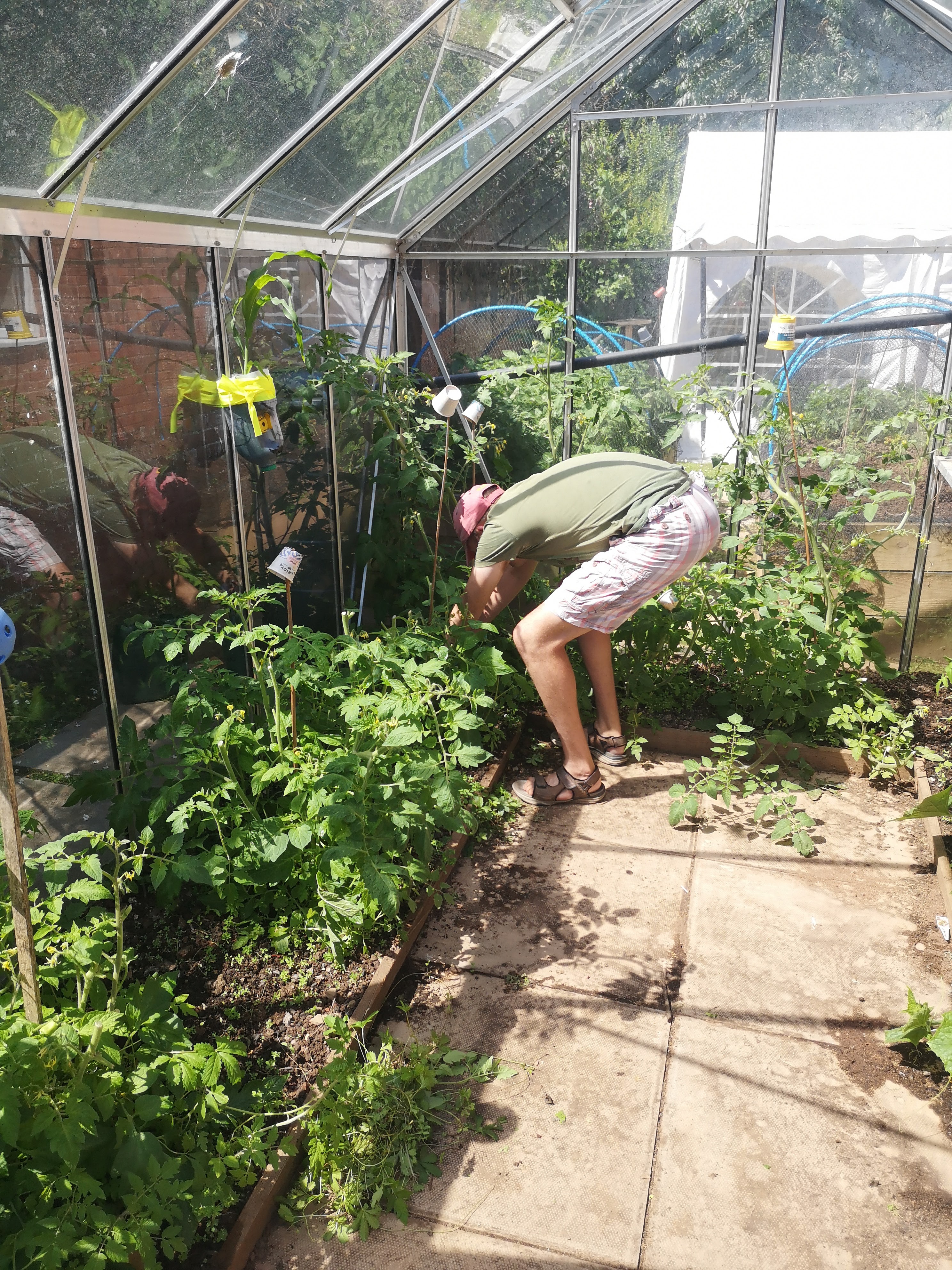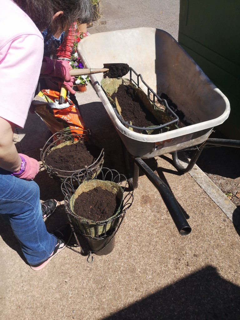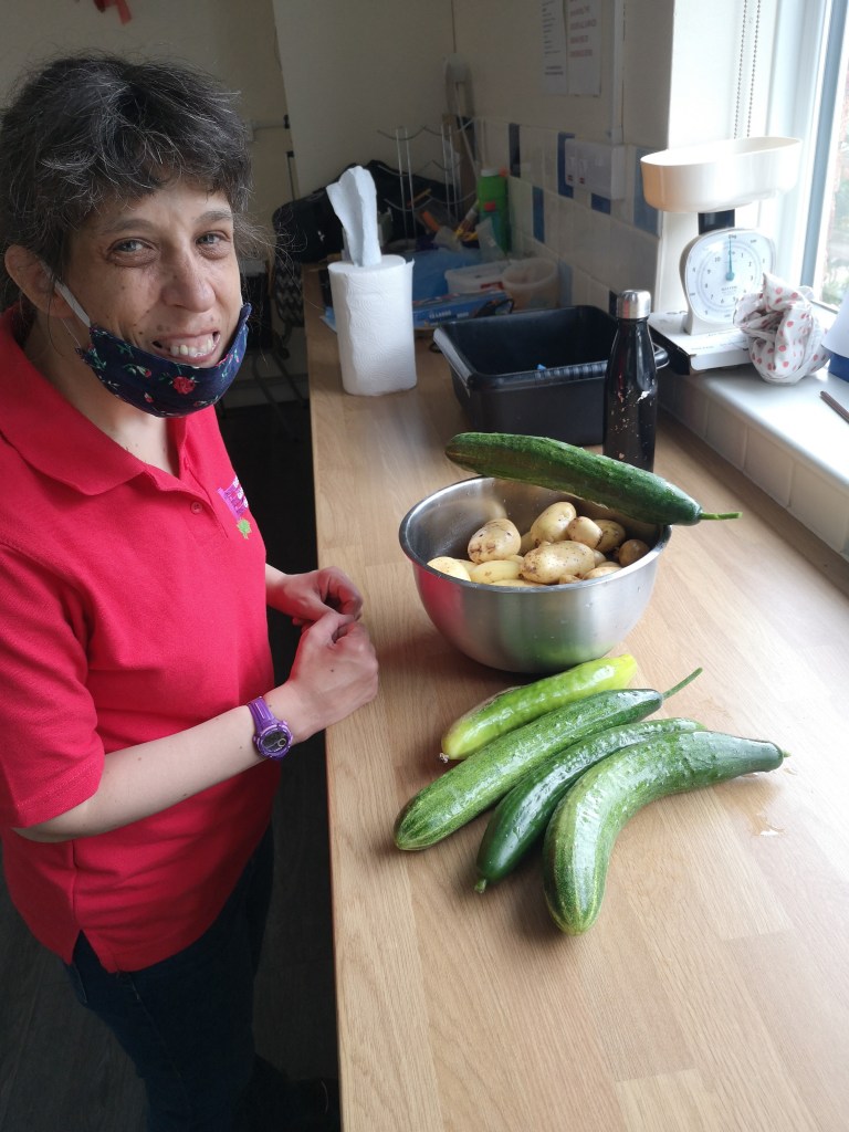 Recently, several members helped to plant up a number of containers with bedding plants to add to the sunflowers, pansies and sweat peas already in bloom. Along with our rose bushes, the front of the centre is awash with colour. The greenhouse has produced a generous crop of cucumbers and the tomatoes, peppers and chillies won’t be long either.
