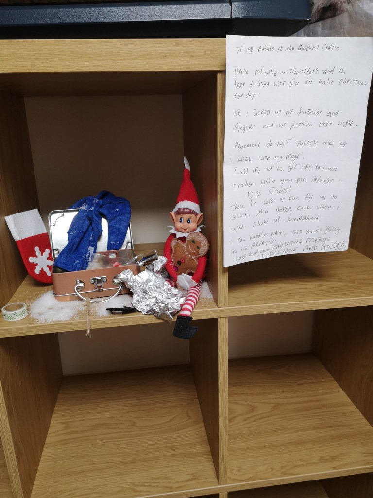 The naughty ‘Elf on the Shelf’ caused havoc around the centre, interrupting Brian’s game of pool and generally disrupting several activities!